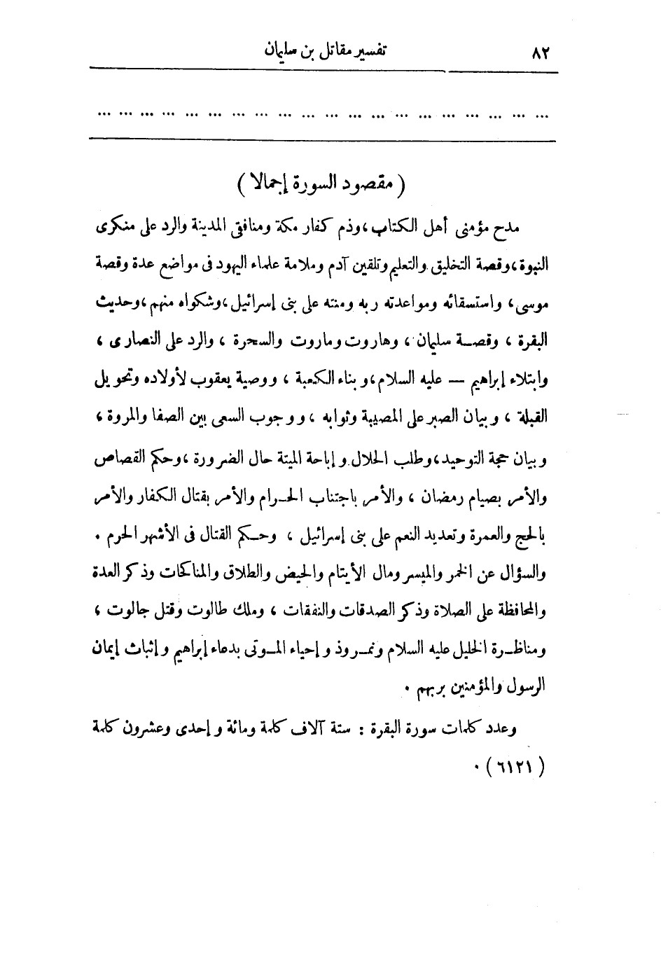 وعدد كلمات سورة البقرة: ستة آلاف كلمة ومائة وإحدى وعشرون كلمة (6121) .