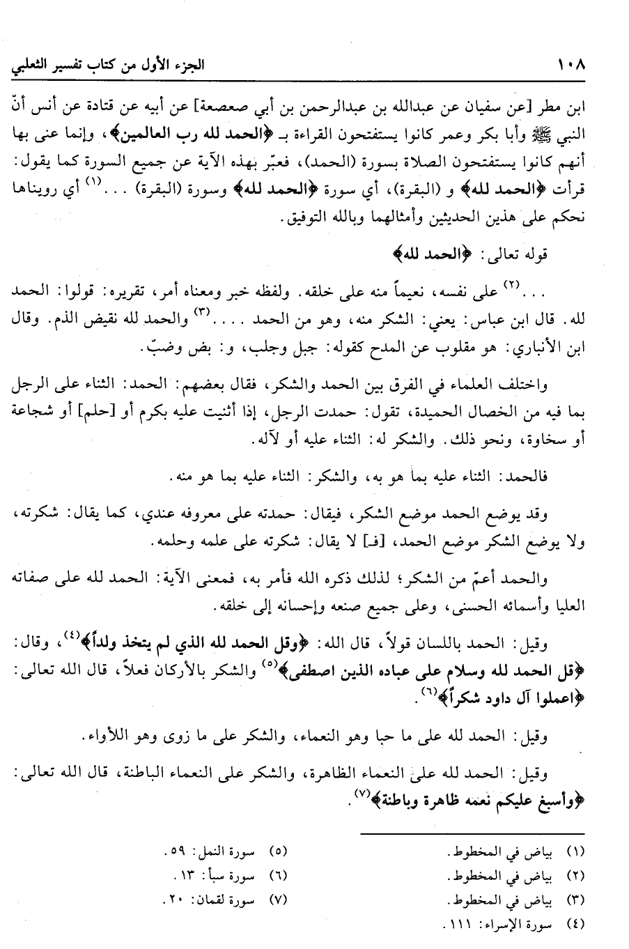 كتاب تفسير الثعلبي = الكشف والبيان عن تفسير القرآن (اسم الجزء: 1)