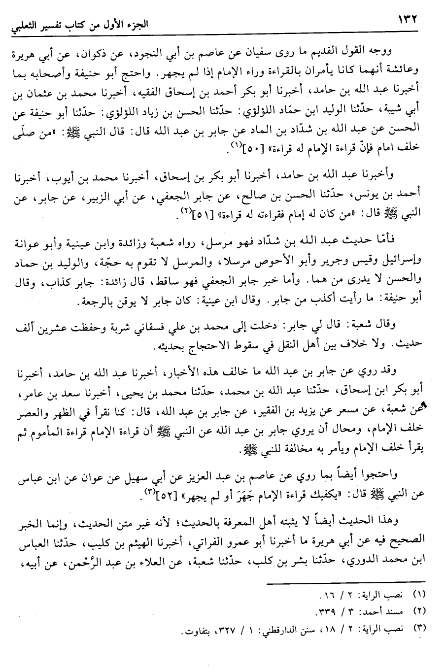 وأخبرنا عبد الله بن حامد، أخبرنا أبو بكر بن إسحاق، أخبرنا محمد بن أيوب، أخبرنا أحمد بن يونس، حدّثنا الحسن بن صالح، عن جابر الجعفي، عن أبي الزبير، عن جابر، عن النبي صلّى الله عليه وسلّم قال: «من كان له إمام فقراءته له قراءة» [51] «2» .