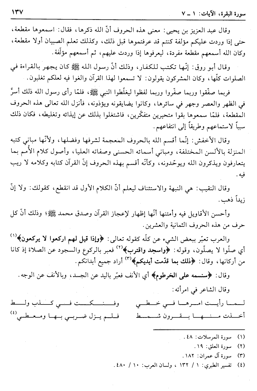 (4) تفسير الطبري: 1/ 132، ولسان العرب: 10/ 480.