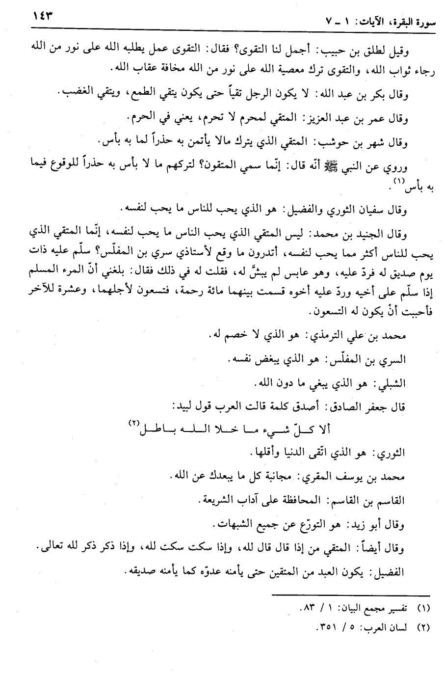 وروي عن النبي صلّى الله عليه وسلّم أنّه قال: إنّما سمي المتقون؟ لتركهم ما لا بأس به حذرا للوقوع فيما به بأس «1» .