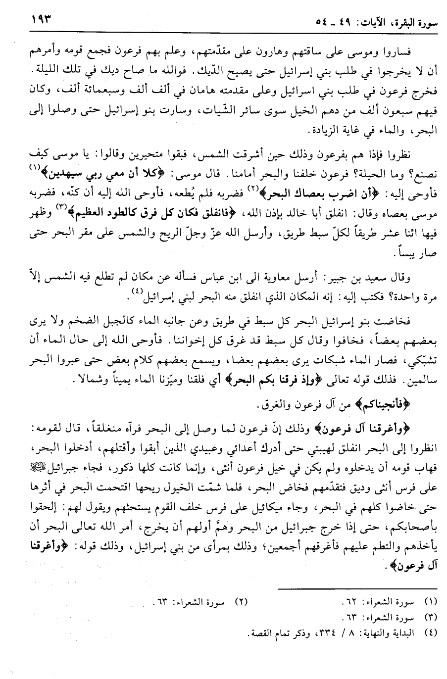 وقال سعيد بن جبير: أرسل معاوية الى ابن عباس فسأله عن مكان لم تطلع فيه الشمس إلّا مرة واحدة؟ فكتب إليه: إنه المكان الذي انفلق منه البحر لبني إسرائيل «4» .