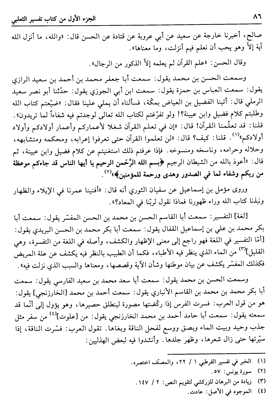 كتاب تفسير الثعلبي = الكشف والبيان عن تفسير القرآن (اسم الجزء: 1)