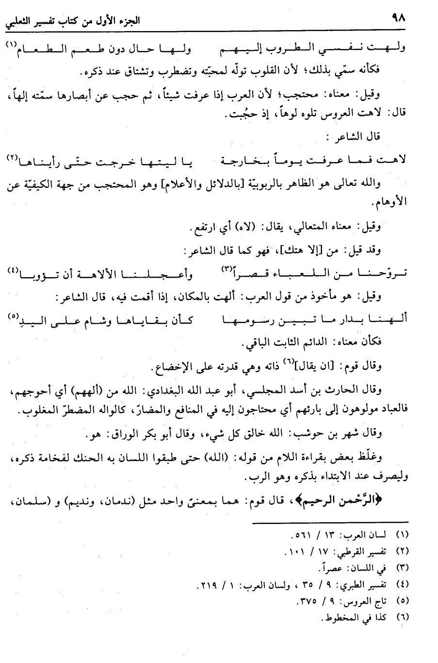 كتاب تفسير الثعلبي = الكشف والبيان عن تفسير القرآن (اسم الجزء: 1)