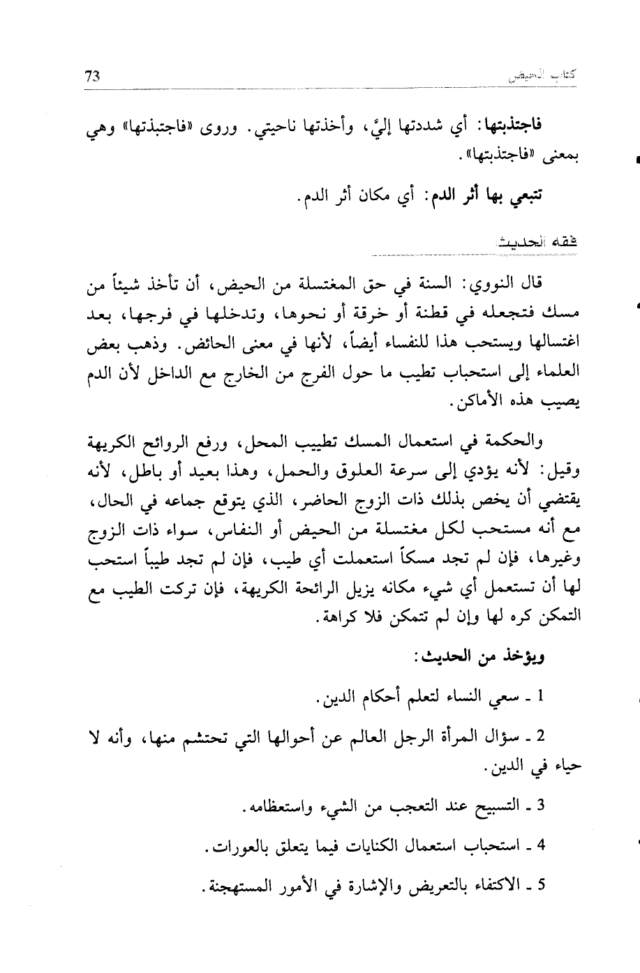 2 - سؤال المرأة الرجل العالم عن أحوالها التي تحتشم منها، وأنه لا حياء في الدين.
