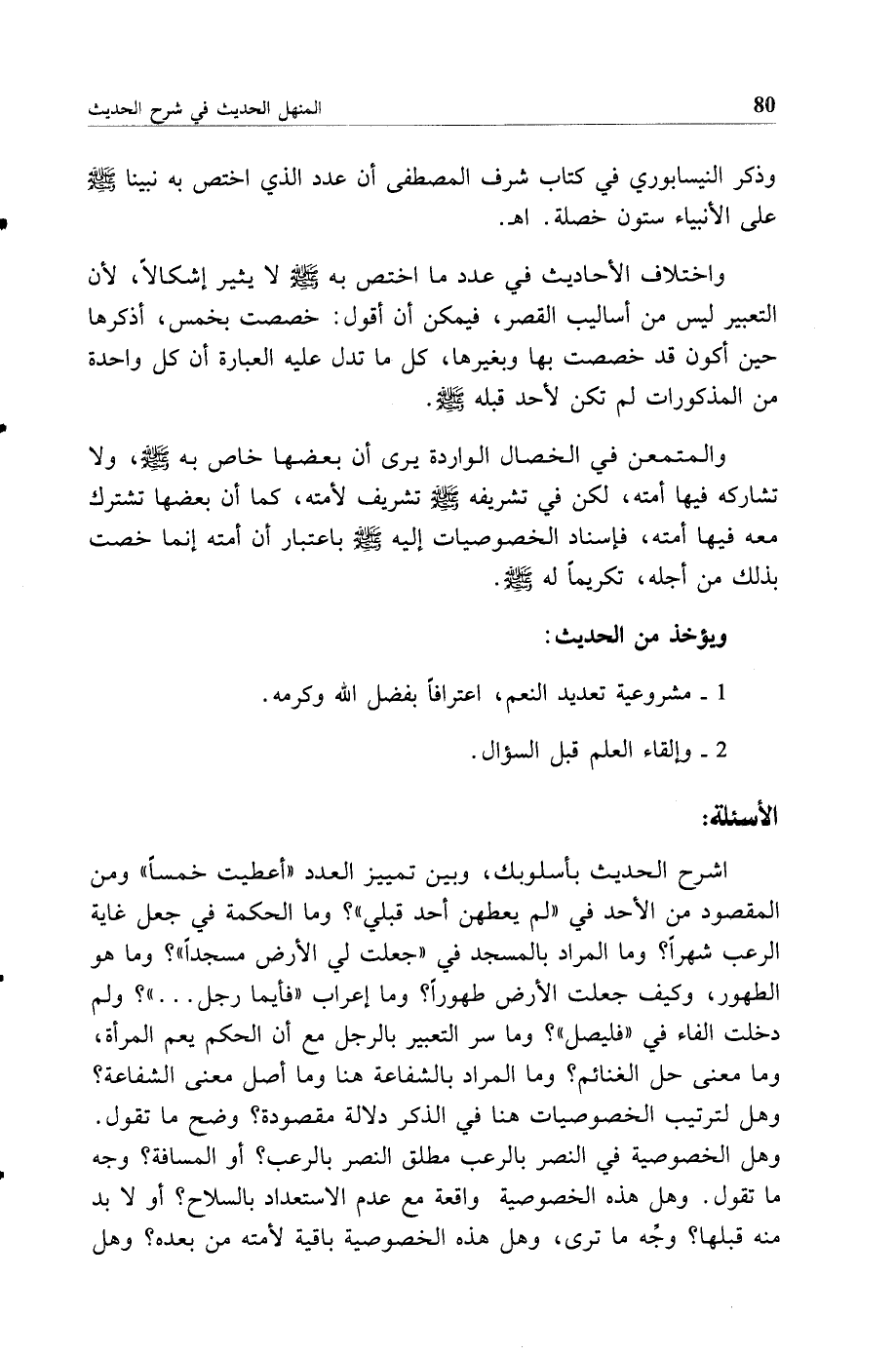 وذكر النيسابوري في كتاب شرف المصطفى أن عدد الذي اختص به نبينا صلى الله عليه وسلم على الأنبياء ستون خصلة. اهـ.