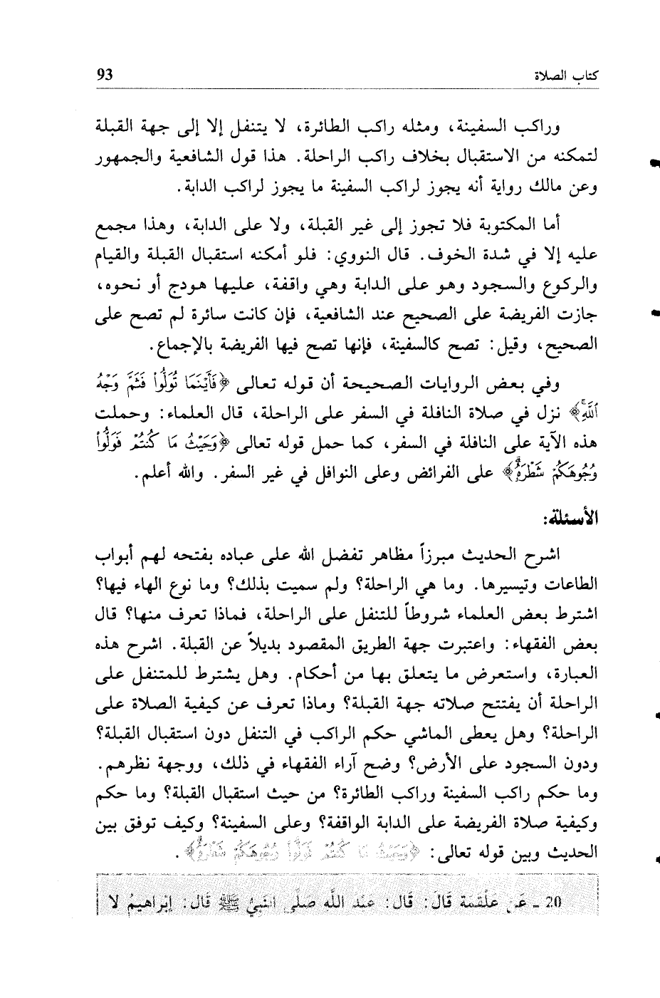 وراكب السفينة، ومثله راكب الطائرة، لا يتنفل إلا إلى جهة القبلة لتمكنه من الاستقبال بخلاف راكب الراحلة. هذا قول الشافعية والجمهور وعن مالك رواية أنه يجوز لراكب السفينة ما يجوز لراكب الدابة.