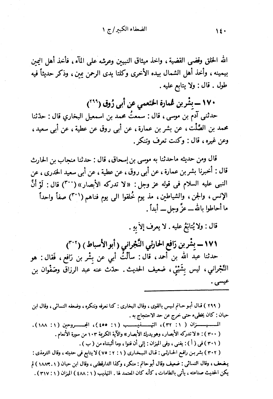 §170 - بِشْرُ بْنُ عُمَارَةَ الْخَثْعَمِيُّ عَنْ أَبِي رَوْقٍ حَدَّثَنِي آدَمُ بْنُ مُوسَى قَالَ: سَمِعْتُ مُحَمَّدَ بْنَ إِسْمَاعِيلَ الْبُخَارِيَّ قَالَ: حَدَّثَنَا مُحَمَّدُ بْنُ الصَّلْتِ عَنْ بِشْرِ بْنِ عُمَارَةَ عَنْ أَبِي رَوْقٍ عَنْ عَطِيَّةَ عَنْ أَبِي سَعِيدٍ وَعَنْ غَيْرِهِ قَالَ: وَكُنْتَ تَعْرِفُ، وَتُنْكِرُ