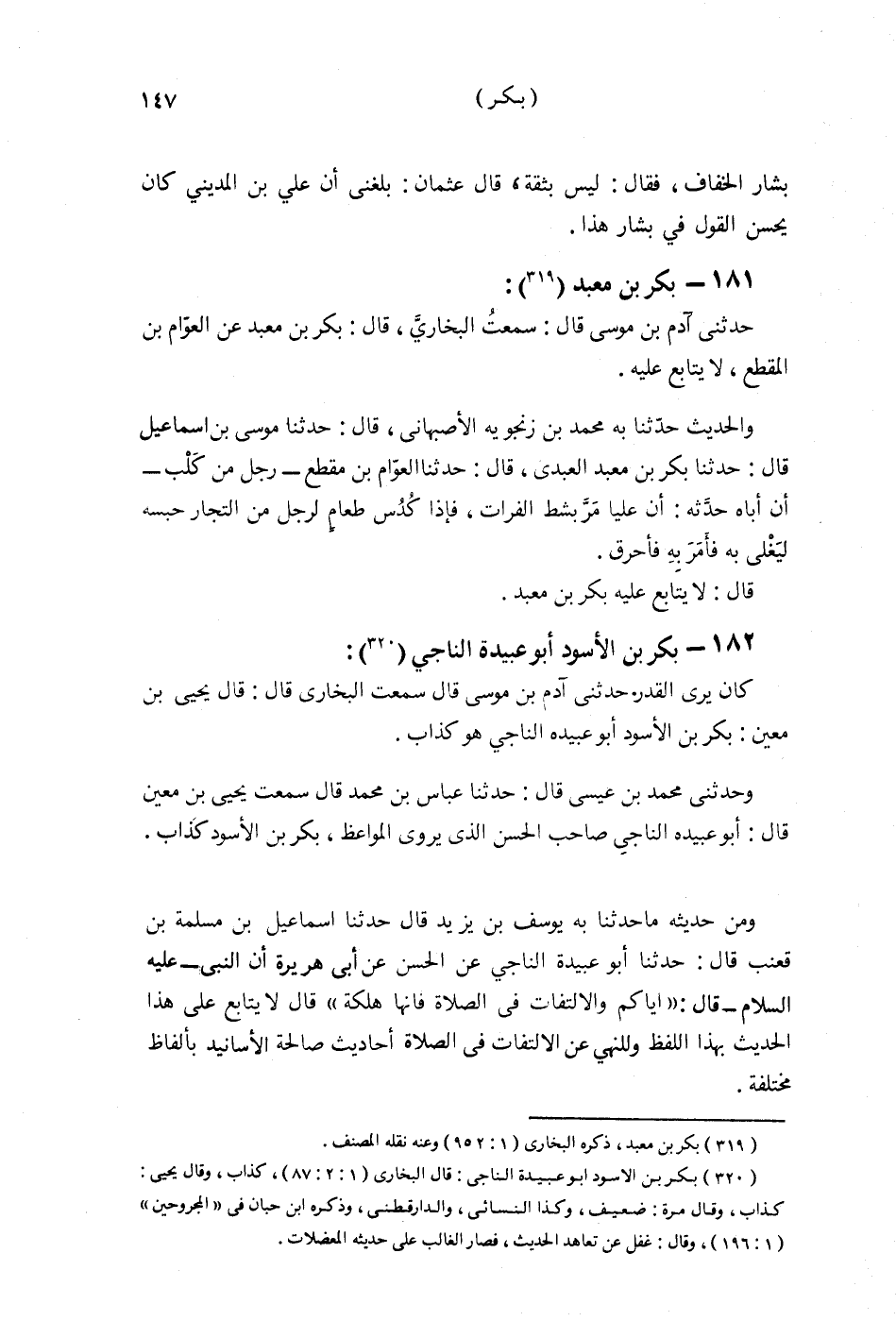§181 - بَكْرُ بْنُ مَعْبَدٍ حَدَّثَنِي آدَمُ بْنُ مُوسَى قَالَ: سَمِعْتُ الْبُخَارِيَّ قَالَ: بَكْرُ بْنُ مَعْبَدٍ عَنِ الْعَوَّامِ بْنِ الْمُقَطَّعِ لَا يُتَابَعُ عَلَيْهِ