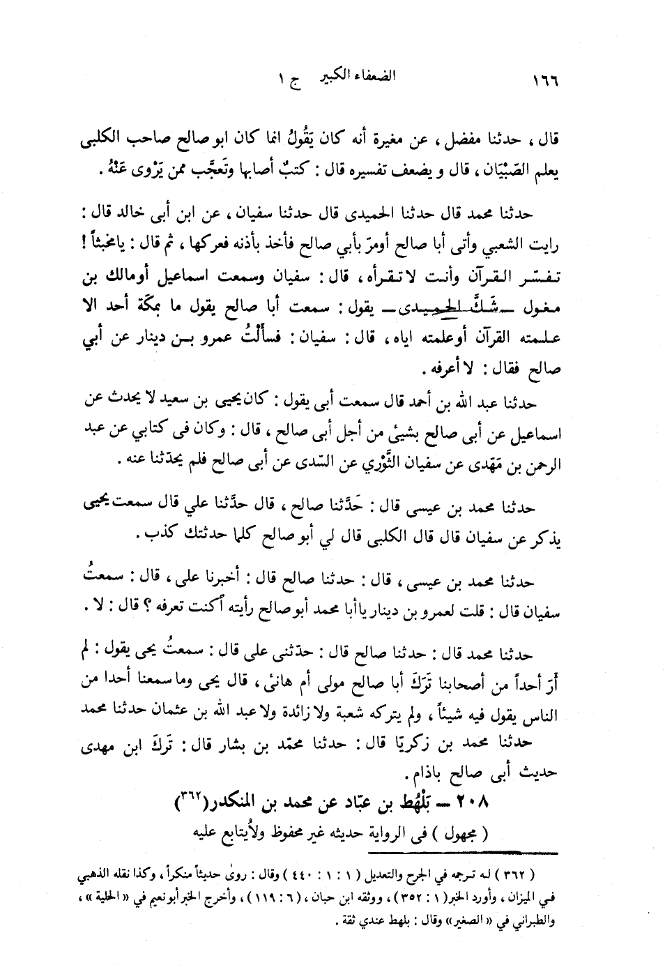 §208 - بَلْهُطُ بْنُ عَبَّادٍ عَنْ مُحَمَّدِ بْنِ الْمُنْكَدِرِ مَجْهُولٌ فِي الرِّوَايَةِ، حَدِيثُهُ غَيْرُ مَحْفُوظٍ وَلَا يُتَابَعُ عَلَيْهِ