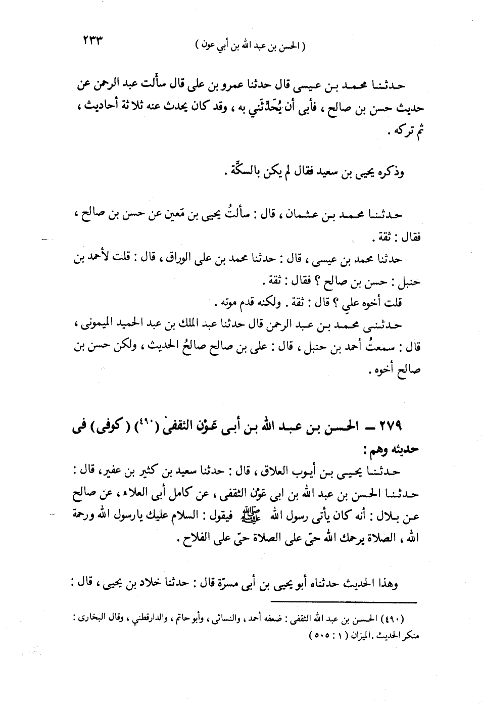 §279 - الْحَسَنُ بْنُ عَبْدِ اللَّهِ بْنِ أَبِي عَوْنٍ الثَّقَفِيُّ كُوفِيٌّ فِي حَدِيثِهِ وَهْمٌ