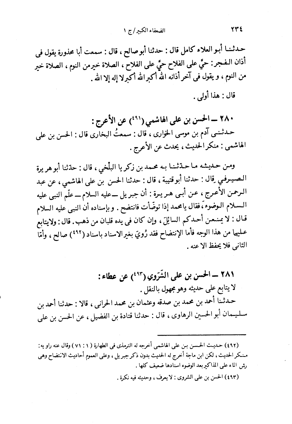 §280 - الْحَسَنُ بْنُ عَلِيٍّ الْهَاشِمِيُّ عَنِ الْأَعْرَجِ حَدَّثَنِي آدَمُ بْنُ مُوسَى الْخُوَارِيُّ قَالَ: سَمِعْتُ الْبُخَارِيَّ قَالَ: الْحَسَنُ بْنُ عَلِيٍّ الْهَاشِمِيُّ مُنْكَرُ الْحَدِيثِ، يُحَدِّثُ عَنِ الْأَعْرَجِ