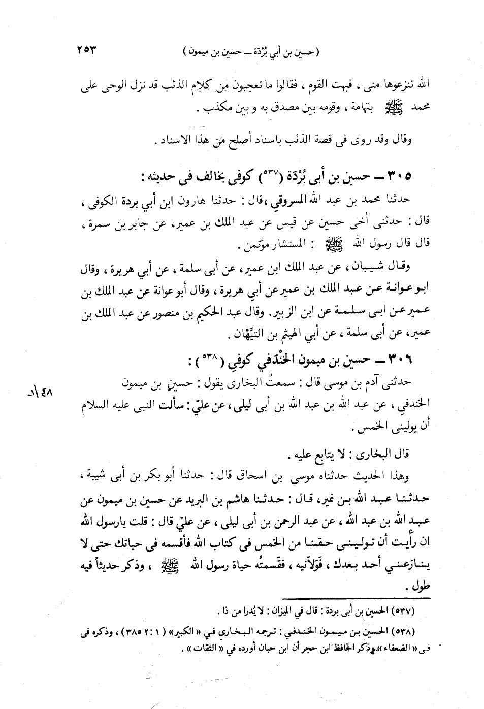 §306 - حُسَيْنُ بْنُ مَيْمُونٍ الْخَنْدَفِيُّ كُوفِيٌّ