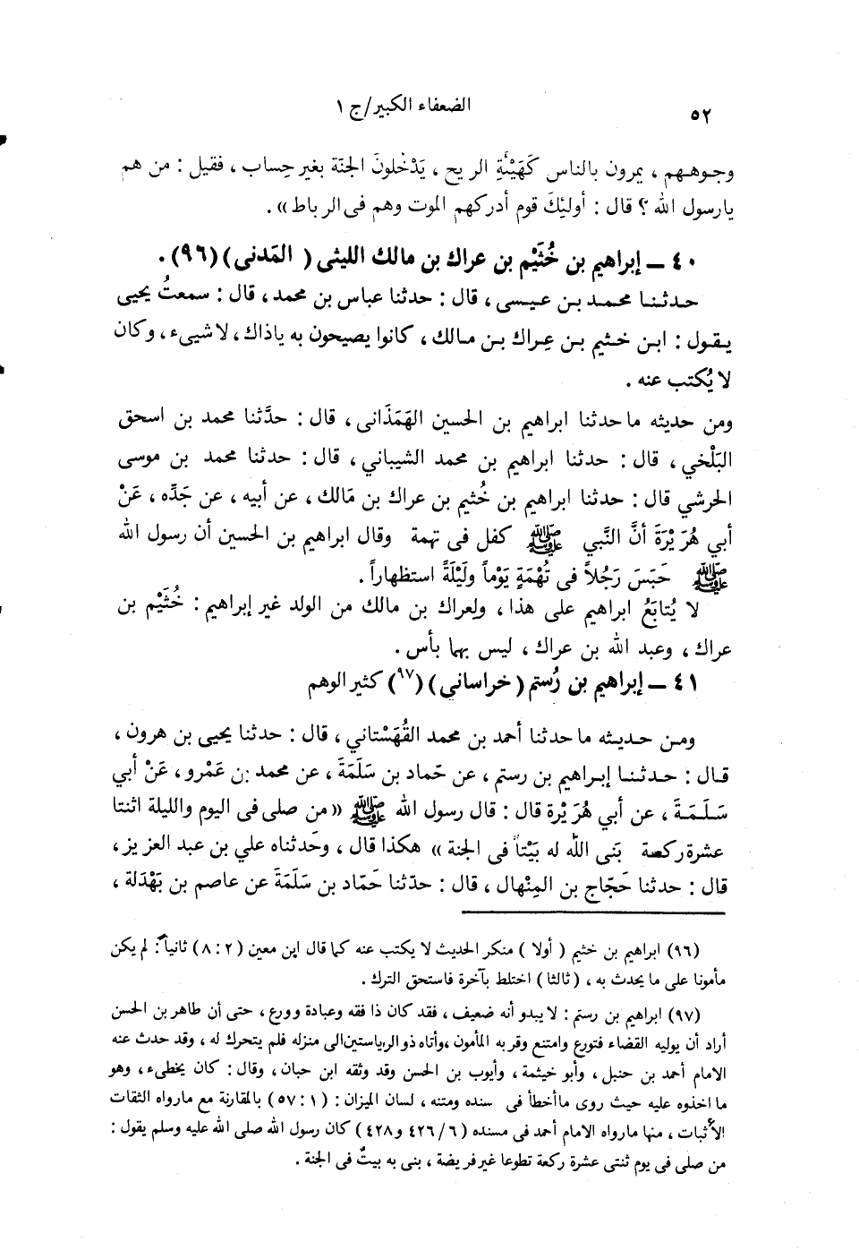 §40 - إِبْرَاهِيمُ بْنُ خُثَيْمِ بْنِ عِرَاكِ بْنِ مَالِكٍ اللَّيْثِيُّ الْمَدَنِيُّ حَدَّثَنَا مُحَمَّدُ بْنُ عِيسَى قَالَ: حَدَّثَنَا عَبَّاسُ بْنُ مُحَمَّدٍ قَالَ: سَمِعْتُ يَحْيَى يَقُولُ: ابْنُ خُثَيْمِ بْنُ عِرَاكِ بْنِ مَالِكٍ كَانُوا يَصِيحُونَ بِهِ يَا ذَاكَ لَا شَيْءَ , وَكَانَ لَا يُكْتَبُ عَنْهُ