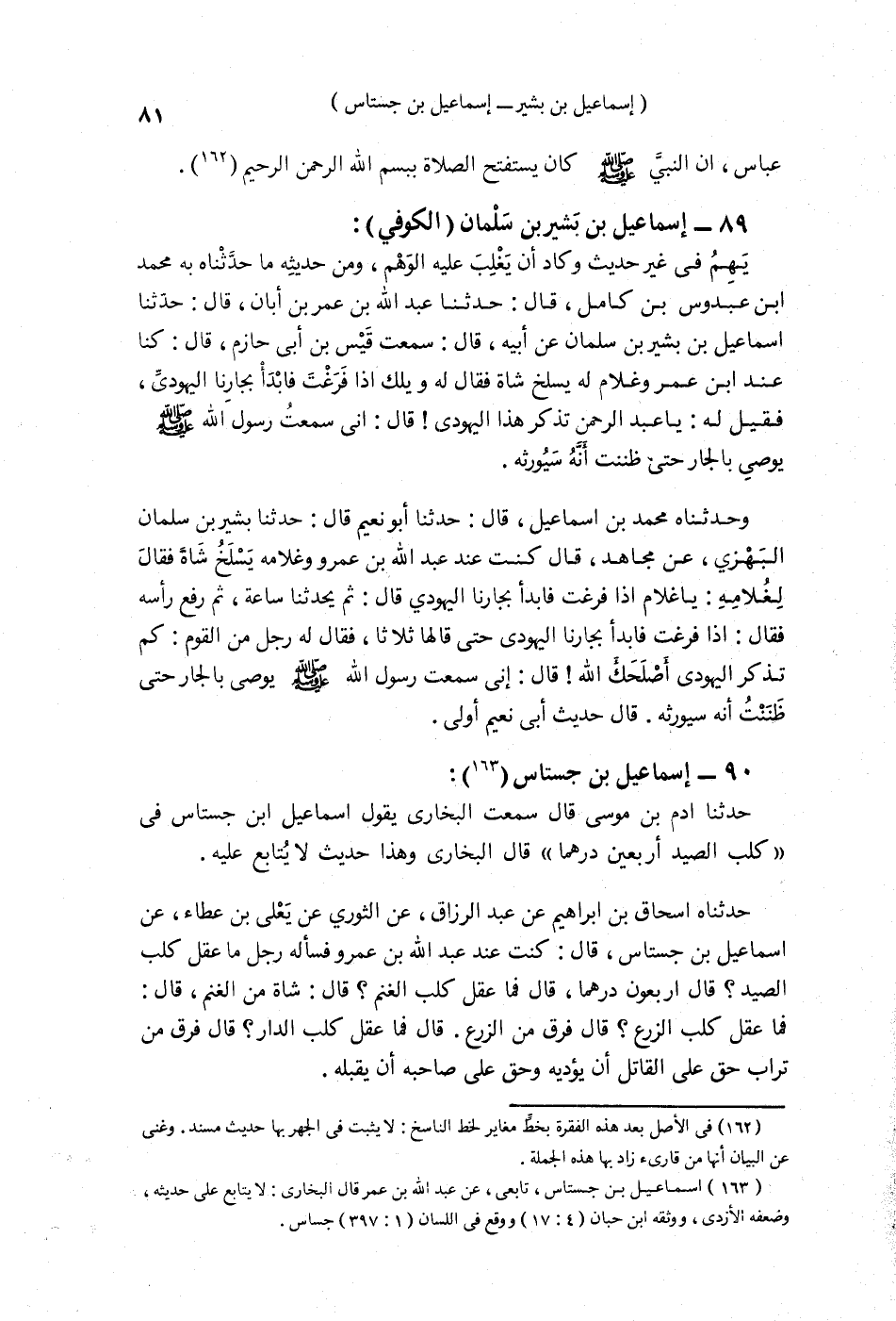 §89 - إِسْمَاعِيلُ بْنُ بَشِيرِ بْنِ سَلْمَانَ الْكُوفِيُّ يَهِمُ فِي غَيْرِ حَدِيثٍ , وَكَادَ أَنْ يَغْلِبَ عَلَيْهِ الْوَهْمُ