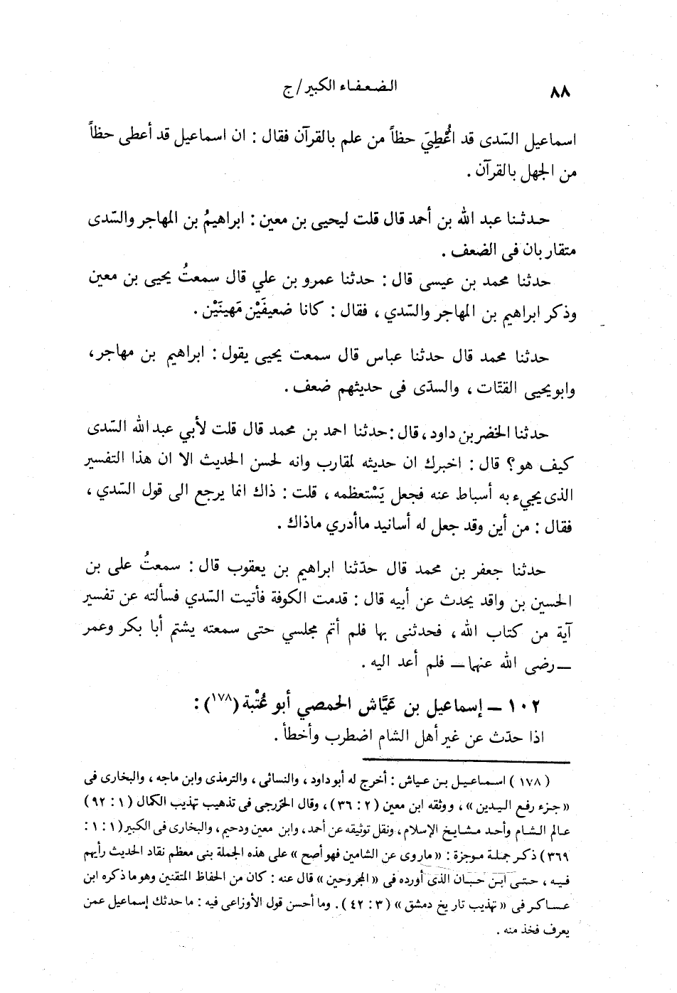 §102 - إِسْمَاعِيلُ بْنُ عَيَّاشٍ الْحِمْصِيُّ أَبُو عُتْبَةَ إِذَا حَدَّثَ عَنْ غَيْرِ أَهْلِ الشَّامِ اضْطَرَبَ , وَأَخْطَأَ