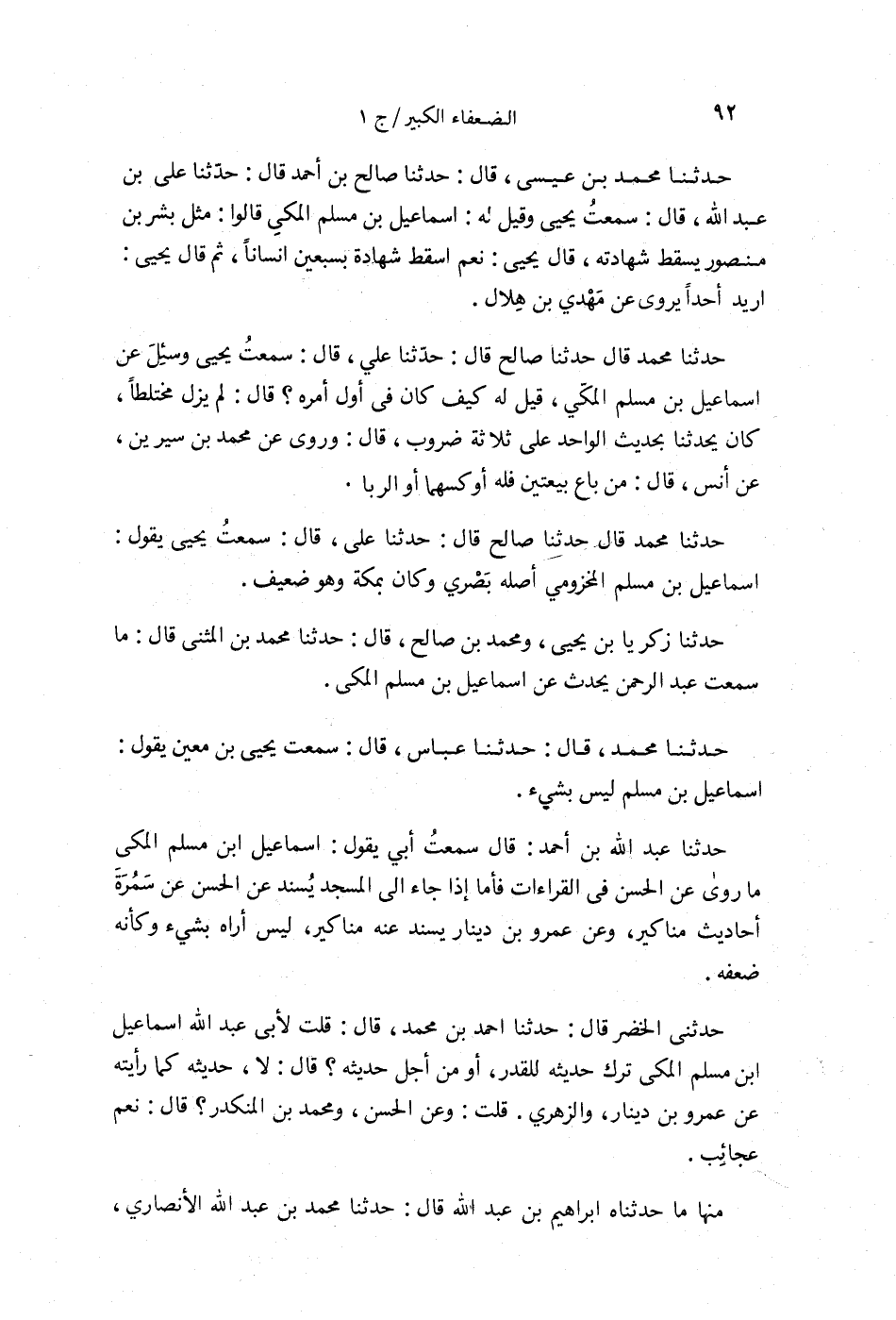 كتاب الضعفاء الكبير للعقيلي (اسم الجزء: 1)