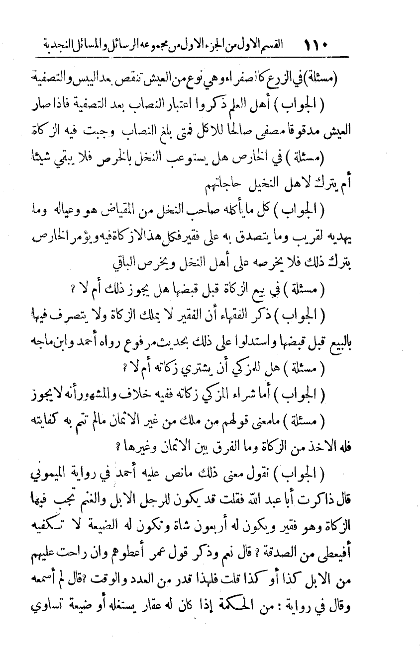 (الجواب): كل ما يأكله صاحب النخل من المقياض هو وعياله وما يهديه لقريب وما يتصدق به على فقير، فكل هذا لا زكاة فيه، ويؤمر الخارص بترك ذلك، فلا يخرصه على أهل النخل ويخرص الباقي.