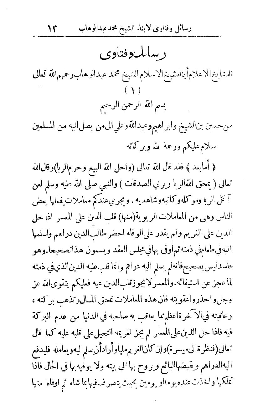 رسائل وفتاوى لأبناء الشيخ محمد بن عبد الوهاب