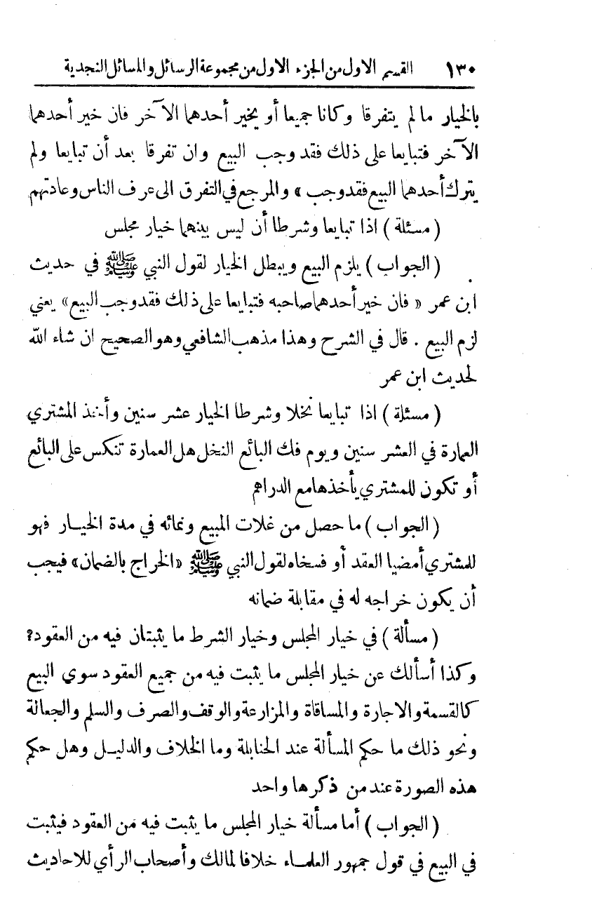 (الجواب): أما مسألة خيار المجلس، ما يثبت فيه من العقود؟ فيثبت في البيع في قول جمهور العلماء، خلافا لمالك وأصحاب الرأي، للأحاديث