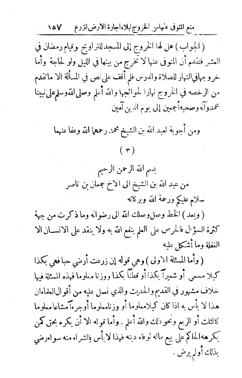 ومن أجوبة لعبد الله بن الشيخ محمد رحمهما الله وعفا عنهما