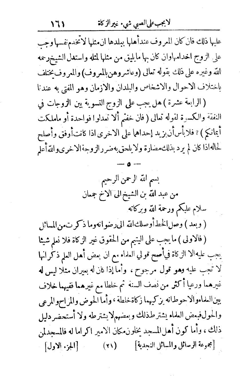 (وبعد) وصل الخط أوصلك الله إلى رضوانه، وما ذكرت من المسائل: