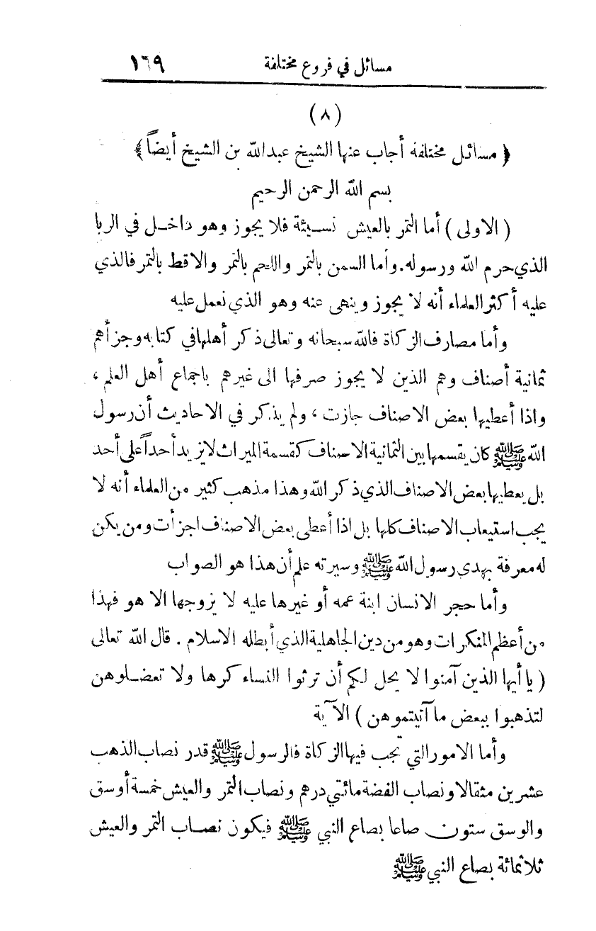 {مسائل مختلفة أجاب عنها الشيخ عبد الله بن الشيخ أيضًا}