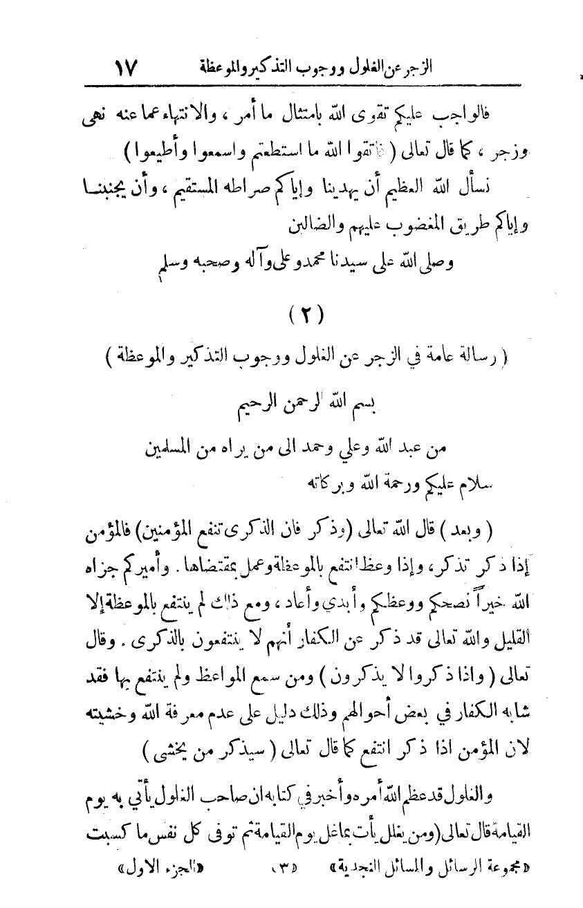 (رسالة عامة في الزجر عن الغلول ووجوب التذكير والموعظة)