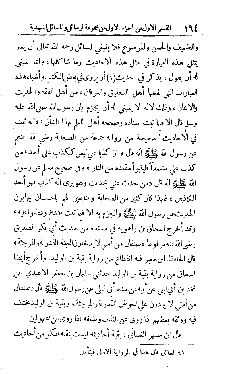كتاب مجموعة الرسائل والمسائل النجدية (اسم الجزء: 1)