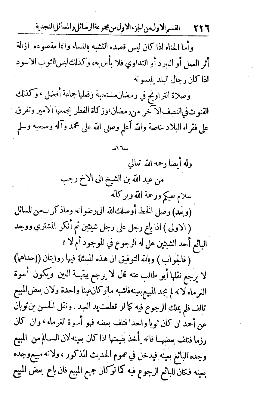 وبعد، وصل الخط أوصلك الله إلى رضوانه، وما ذكرت من المسائل: