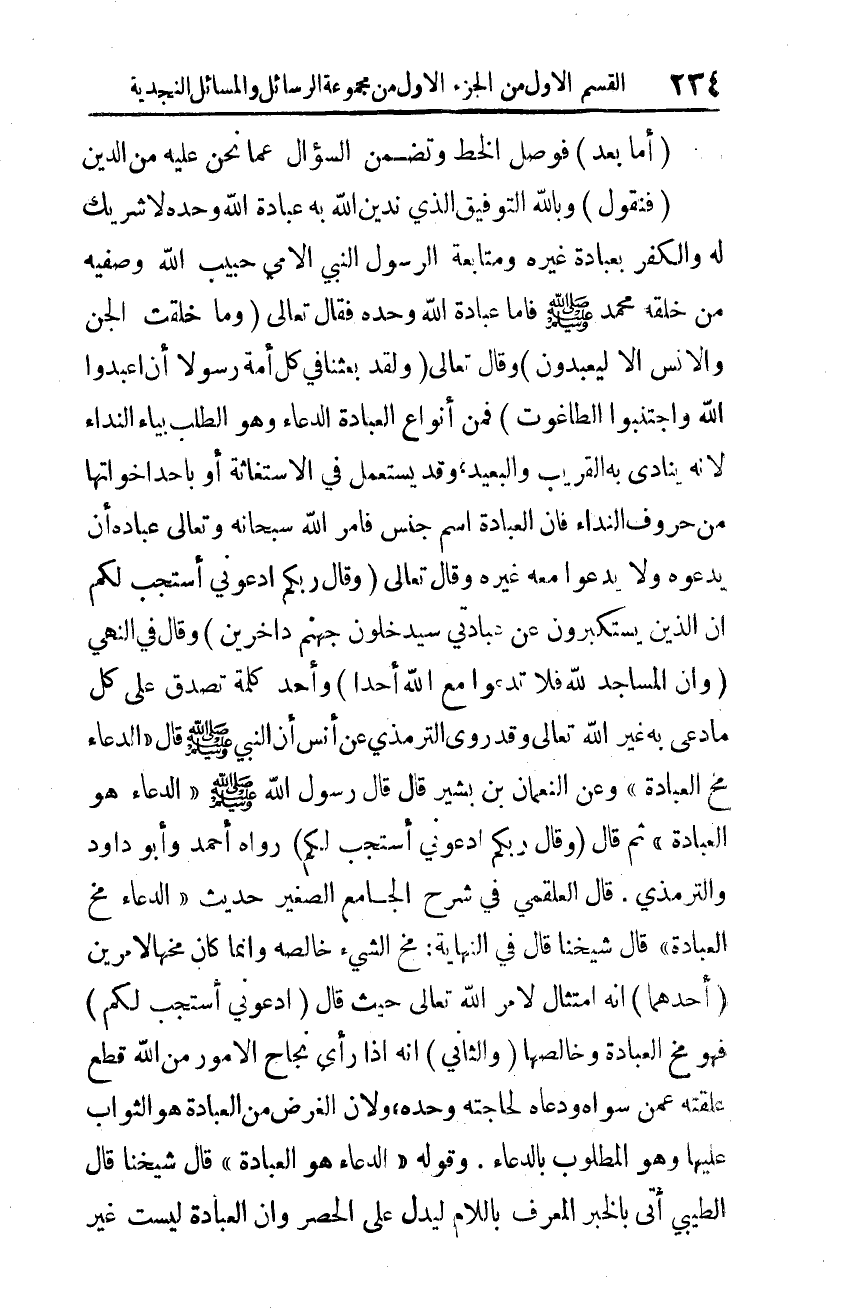 كتاب مجموعة الرسائل والمسائل النجدية (اسم الجزء: 1)