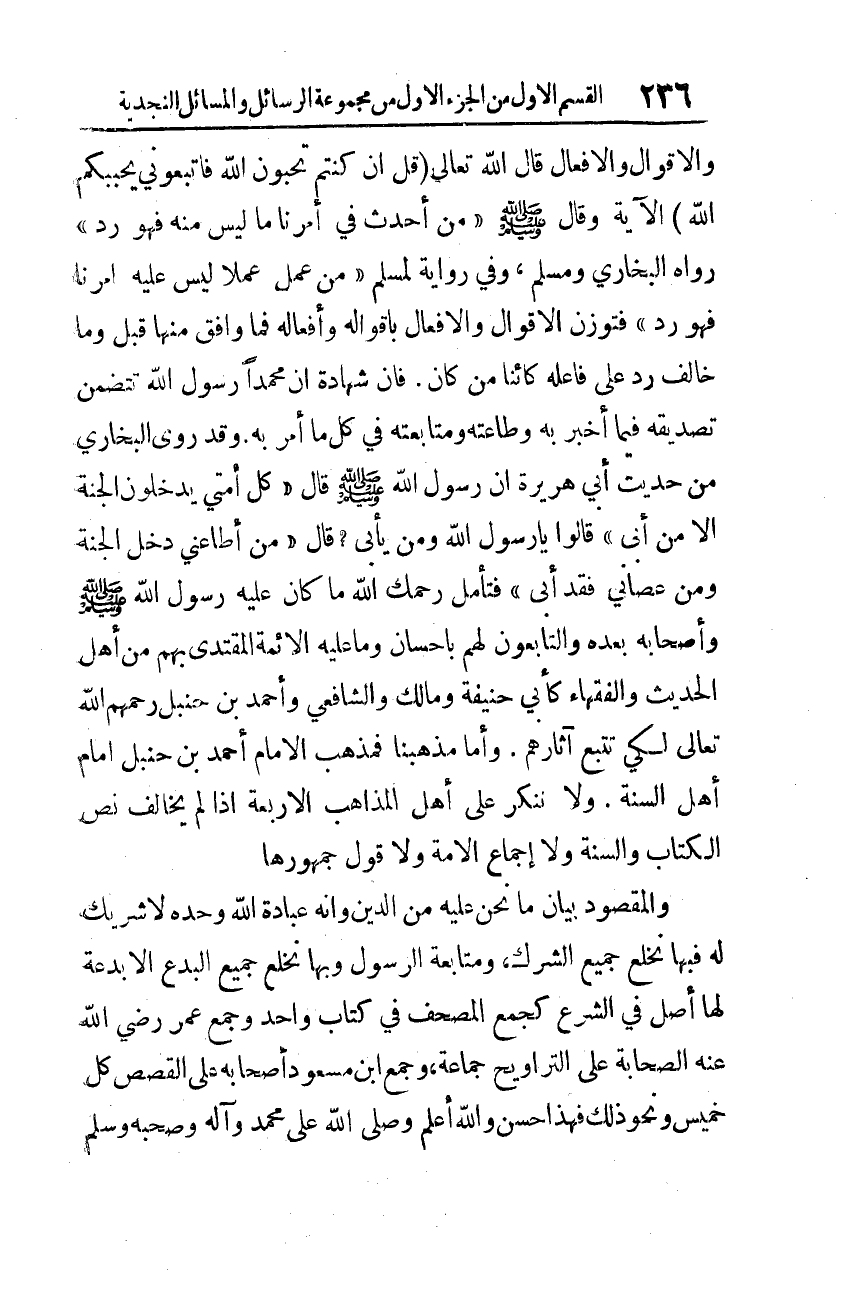 كتاب مجموعة الرسائل والمسائل النجدية (اسم الجزء: 1)