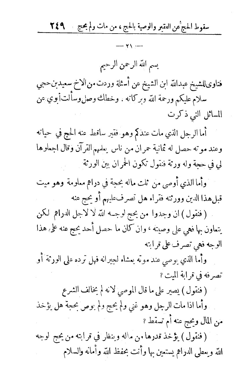 فتاوى للشّيخ عبد الله بن الشّيخ عن أسئلة وردت من الأخ سعيد بن حجي.