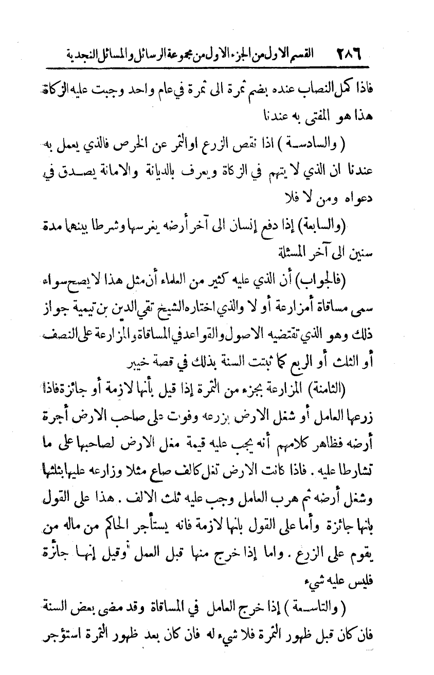 فالجواب: أنّ الذي عليه كثير من العلماء أنّ مثل هذا لا يصحّ سواء سمّى مساقاةً أو مزارعةً أو لا، والذي اختاره الشّيخ تقيّ الدّين ابن تيمية جواز ذلك، وهو الذي تقتضيه الأصول والقواعد في المساقاة والمزارعة على النّصف أو الثّلث أو الرّبع كما ثبتت السّنة بذلك في قصة خيبر.