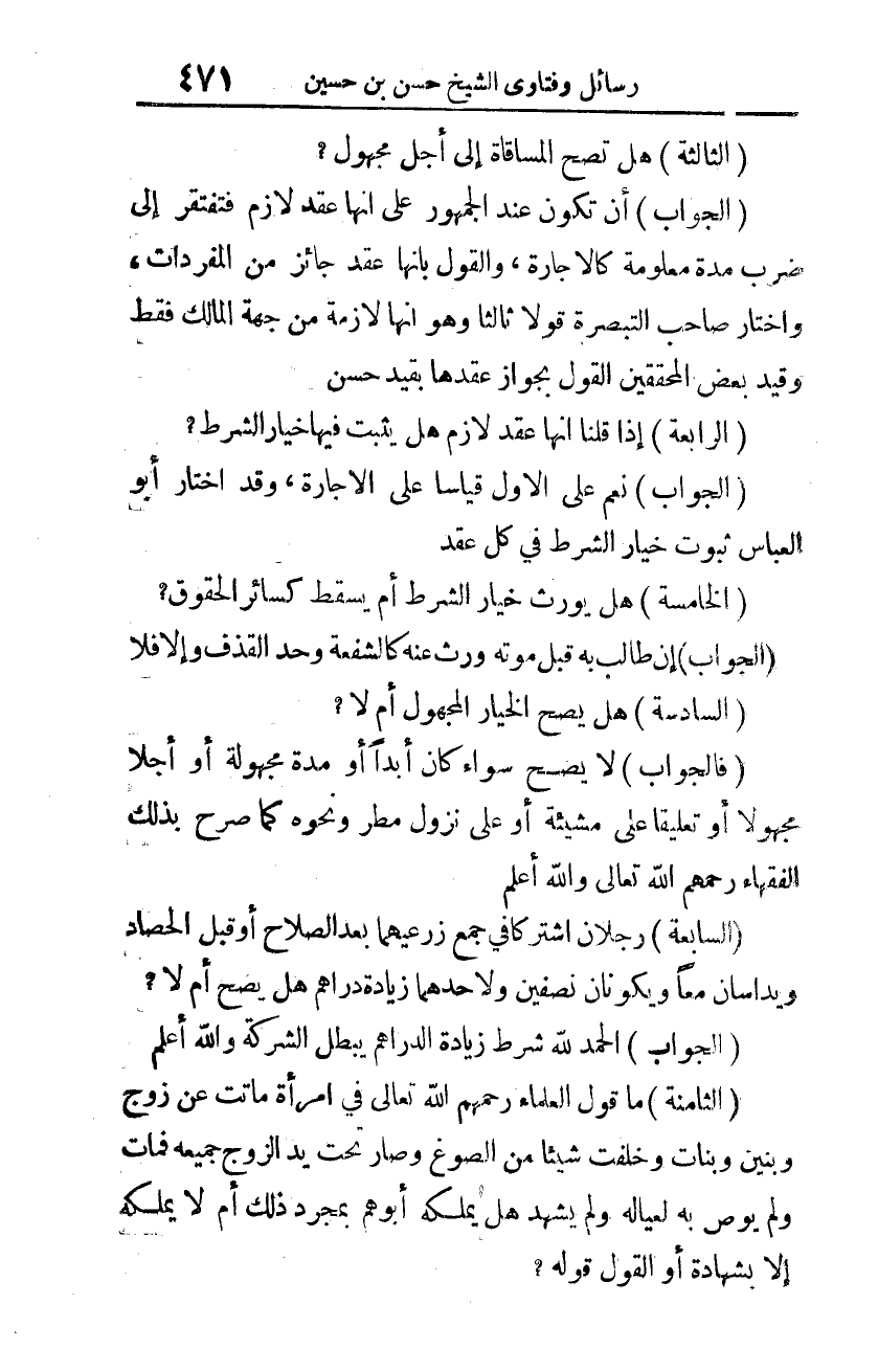 الجواب: إن تكون عند الجمهور على أنّها عقدٌ لازمٌ فتفتقر إلى ضرب مدّةٍ معلومةٍ كالإجارة، والقول بأنّها عقد جائز من المفردات، واختار صاحب التّبصرة قولًا ثالثًا وهو أنّها لازمة من جهة المالك فقط. وقيد بعض المحقِّقين القول بجواز عقدها بقيدٍ حسنٍ.