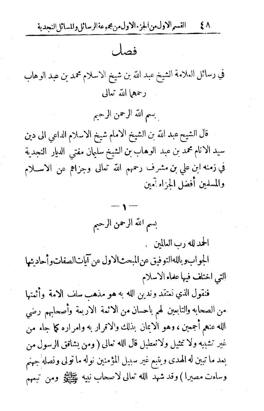 كتاب مجموعة الرسائل والمسائل النجدية (اسم الجزء: 1)