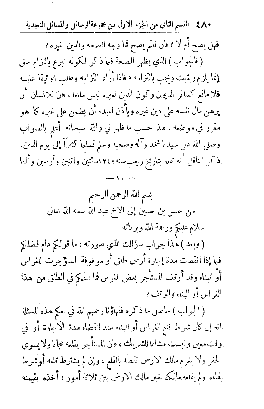 من حسن بن حسين إلى الأخ عبد الله سلّمه الله تعالى.