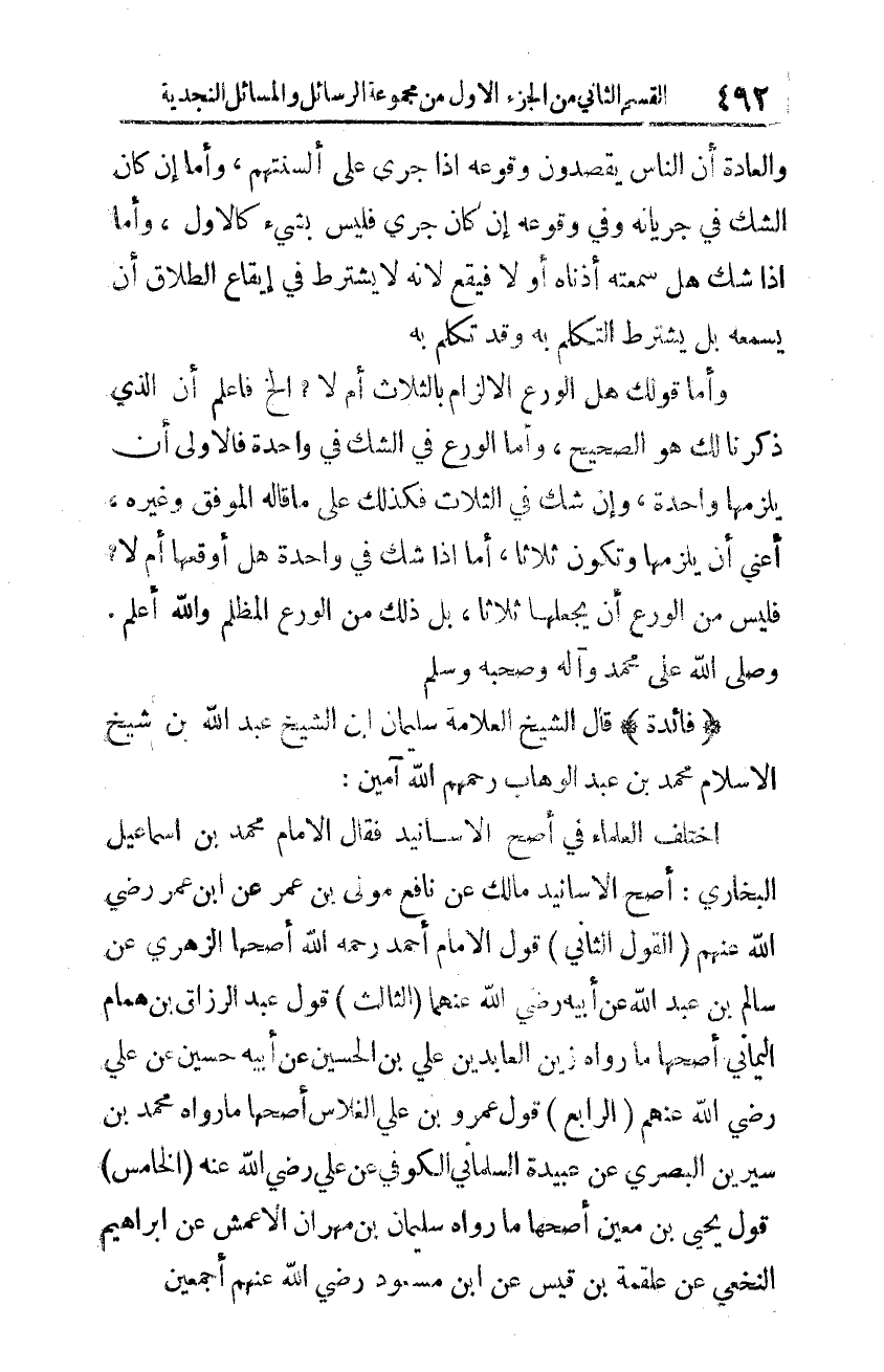 فائدة: قال الشّيخ العلّامة سليمان بن الشّيخ عبد الله بن شيخ الإسلام محمّد بن عبد الوهّاب رحمهم الله آمين.