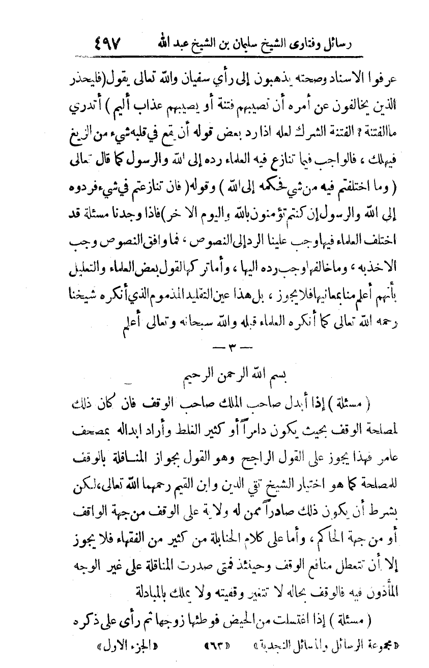 كتاب مجموعة الرسائل والمسائل النجدية (اسم الجزء: 1)