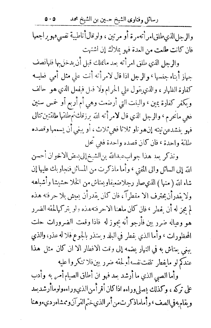 ونذكر بعد هذا جواب عبد الله بن الشّيخ إلى بعض الإخوان أحسن الله إلى السّائل وإلى المفتي.