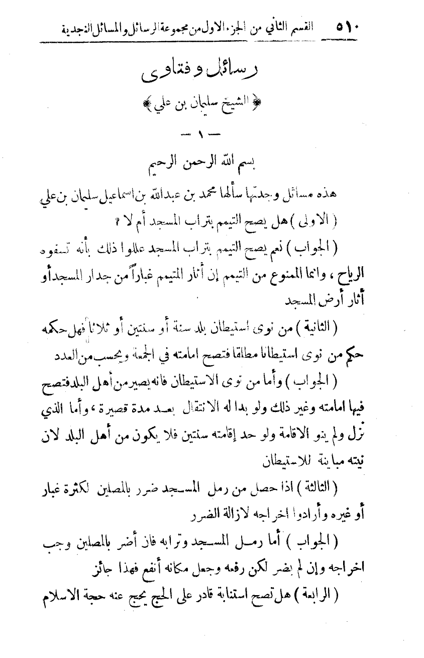 هذه مسائل وجدتها سألها محمّد بن عبد الله بن إسماعيل سليمان بن عليّ: