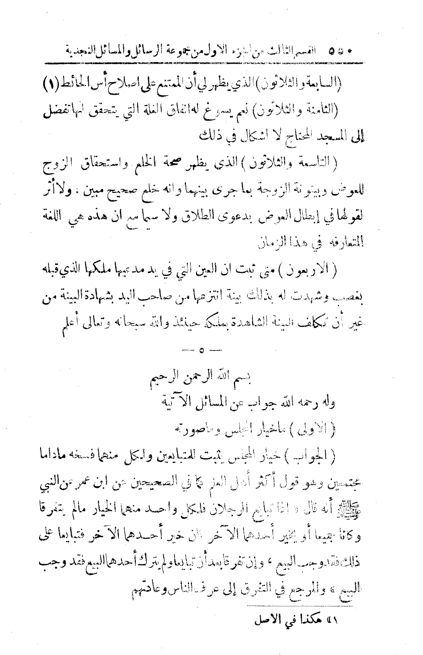 وله -رحمه الله- جواب عن المسائل الآتية:*