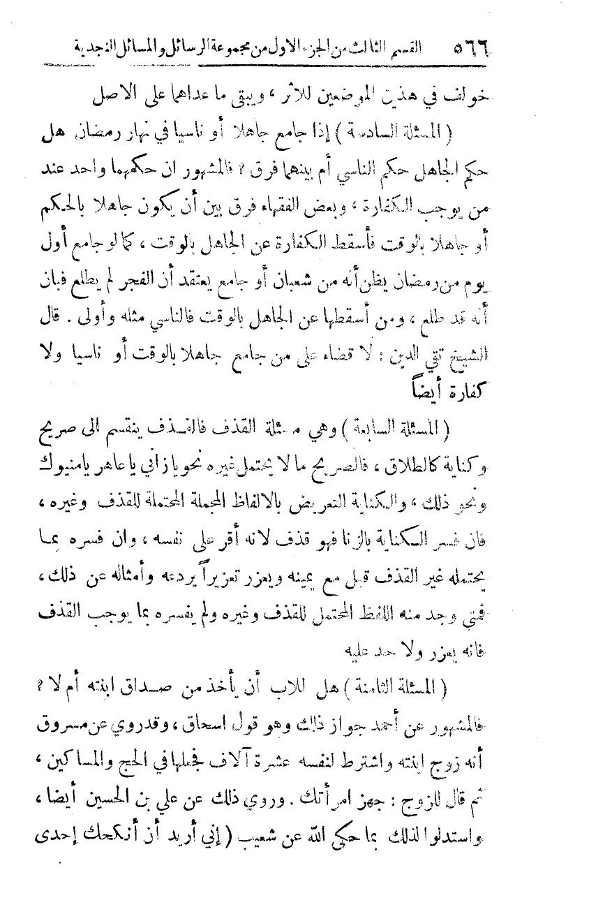 المسألة السّابعة: وهي مسألة القذف.
