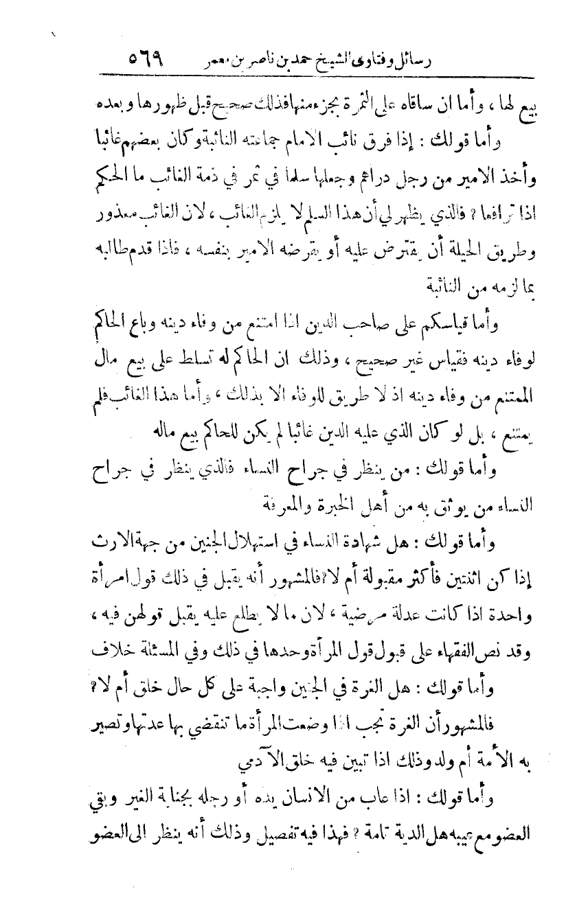 وأمّا قولك: مَن ينظر في جراح النّساء فالذي ينظر في جراح النّساء من يوثق به من أهل الخبرة والمعرفة.