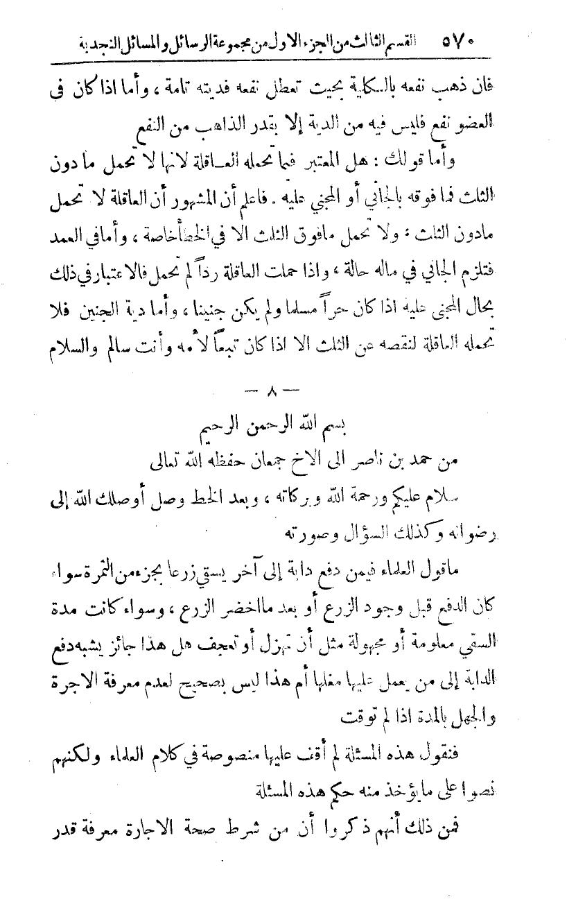 من حمد بن ناصر إلى الأخ جمعان حفظه الله تعالى.