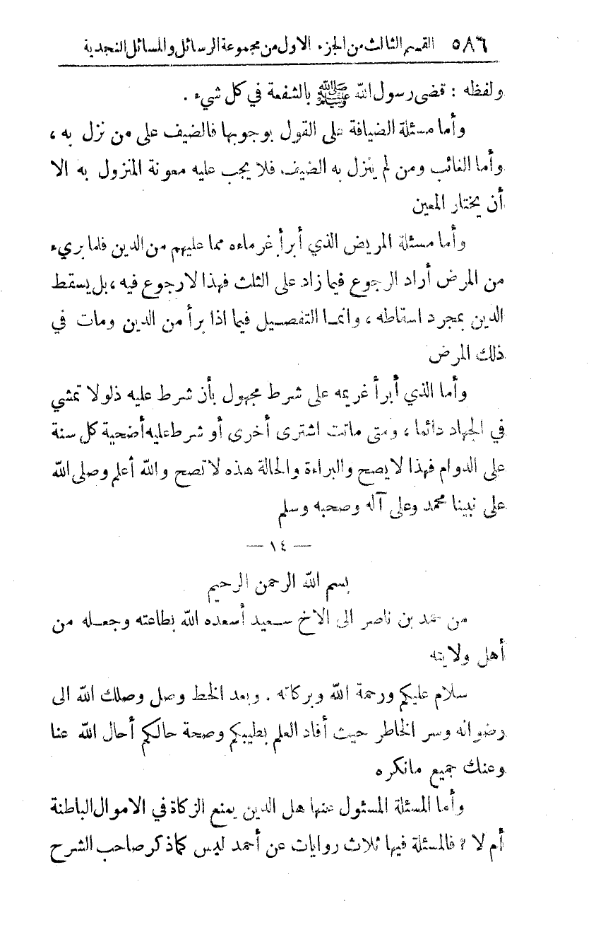 من حمد بن ناصر إلى الأخ سعيد أسعده الله بطاعته وجعله من أهل ولايته.