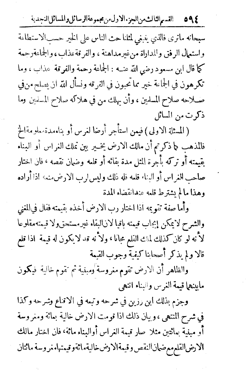 المسألة الأولى: فيمَن استأجر أرضًا لغرسٍ أو بناءٍ مدّةً معلومةً الخ؟