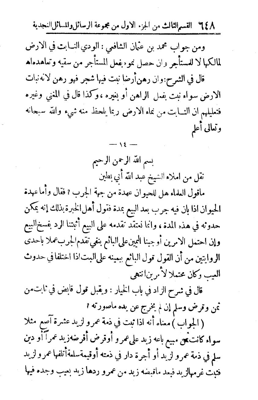 نقل من إملاء الشّيخ عبد الله أبي بطين: