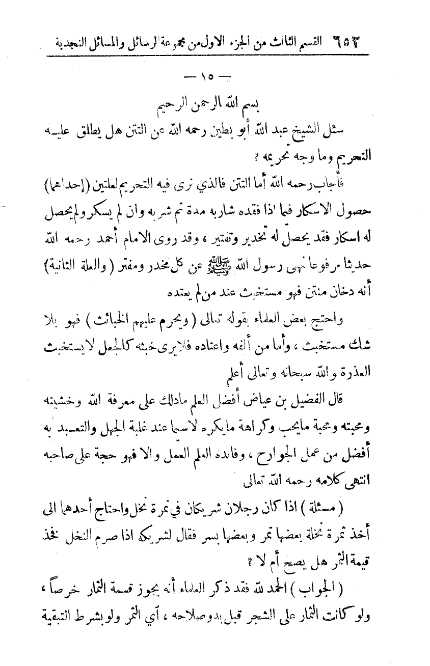 سُئِل الشّيخ عبد الله أبو بطين -رحمه الله- عن التتن هل يطلق عليه التّحريم وما وجه تحريمه؟
