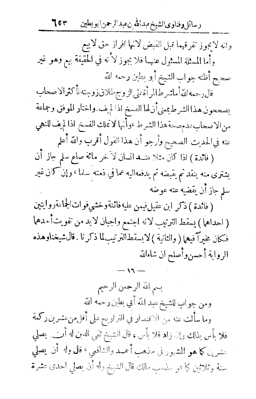 ومن جوابٍ للشّيخ عبد الله أبي بطين رحمه الله: